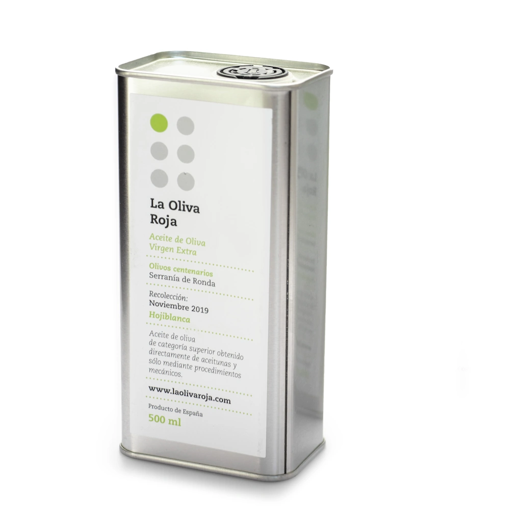 La Oliva Roja es un AOVE Hojiblanca de la Serranía de Ronda, procedente de olivos centenarios de montaña, próximos al Parque Natural Sierra de las Nieves. Su cultivo es tradicional, de secano y no mecanizado, con manejo y recolección manual.